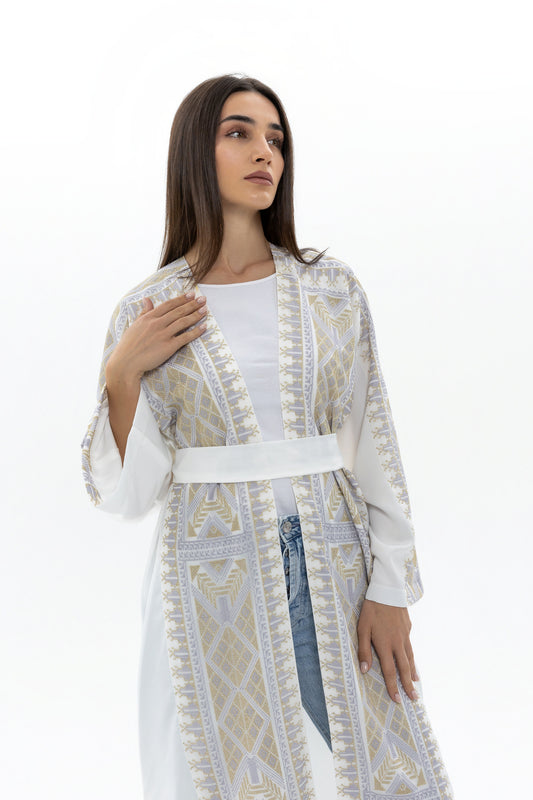 White Abaya with Gold & Silver Tatreez