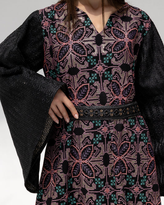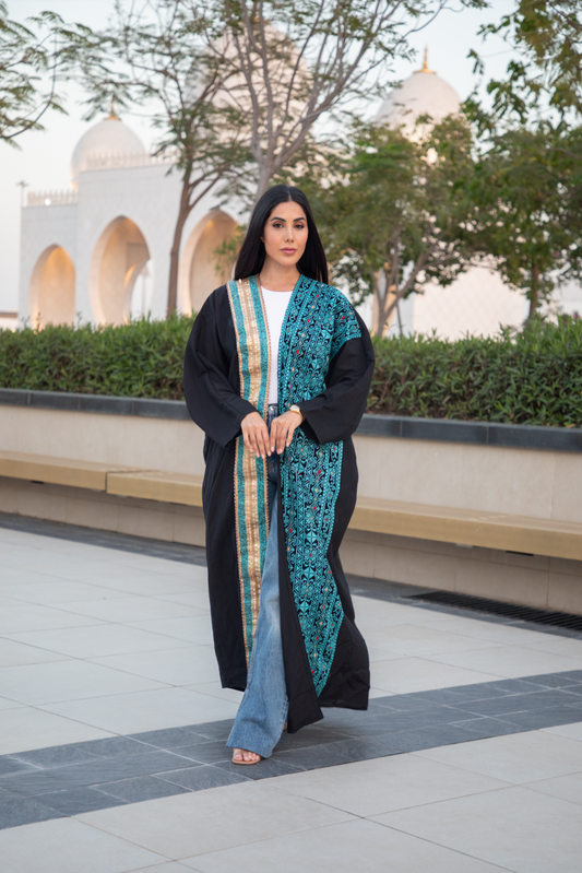 Blue & Black Abaya with Modern Palestinian Tatreez