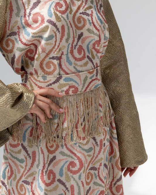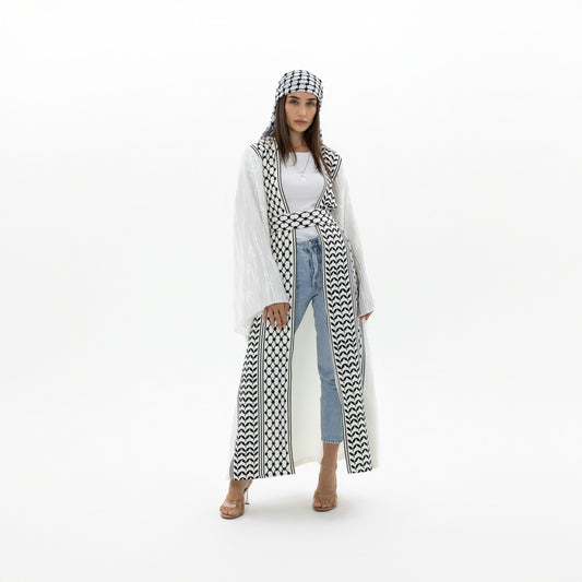 Ivory Kaftan with Sheer Overlay and Coins Details