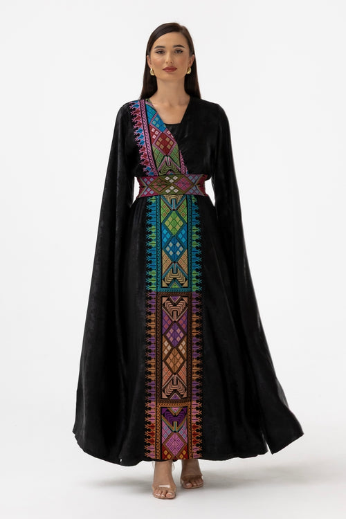 Ivory Abaya with Embroidered Sequin Sleeves -