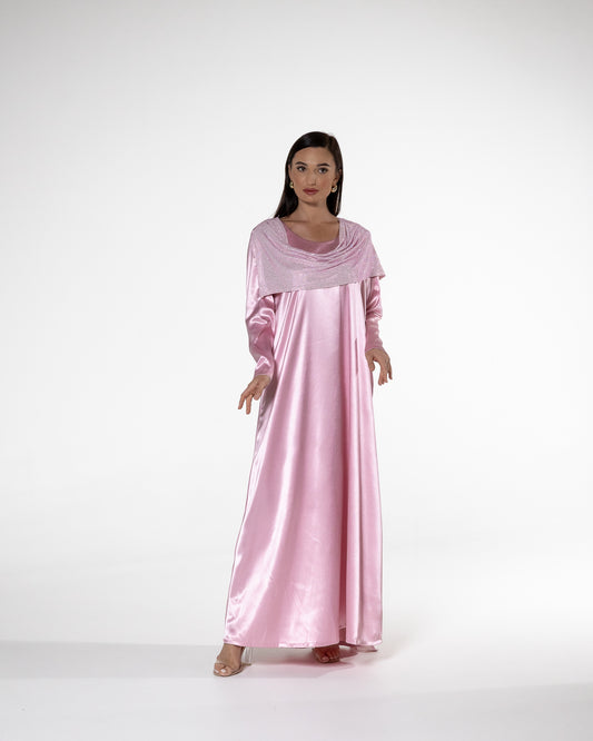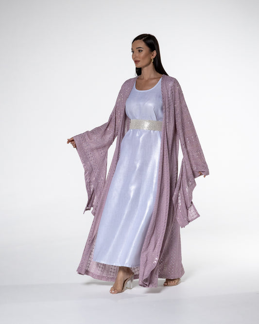 Champagne Lace Abaya with Sheer Puff Sleeves