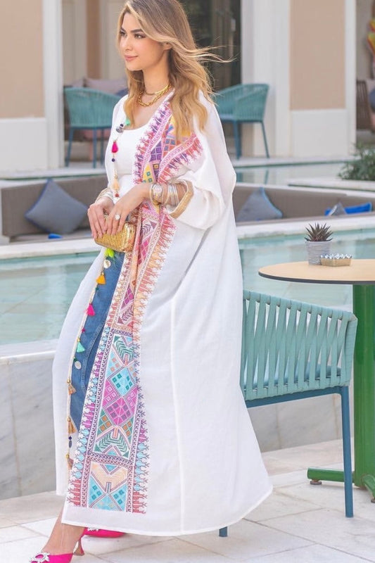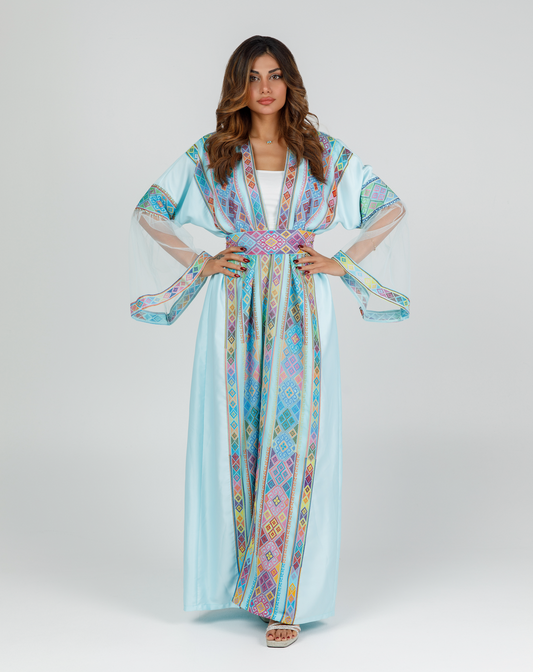 Adult Red & Black Abaya with Tatreez & Gold coins (Lerat)