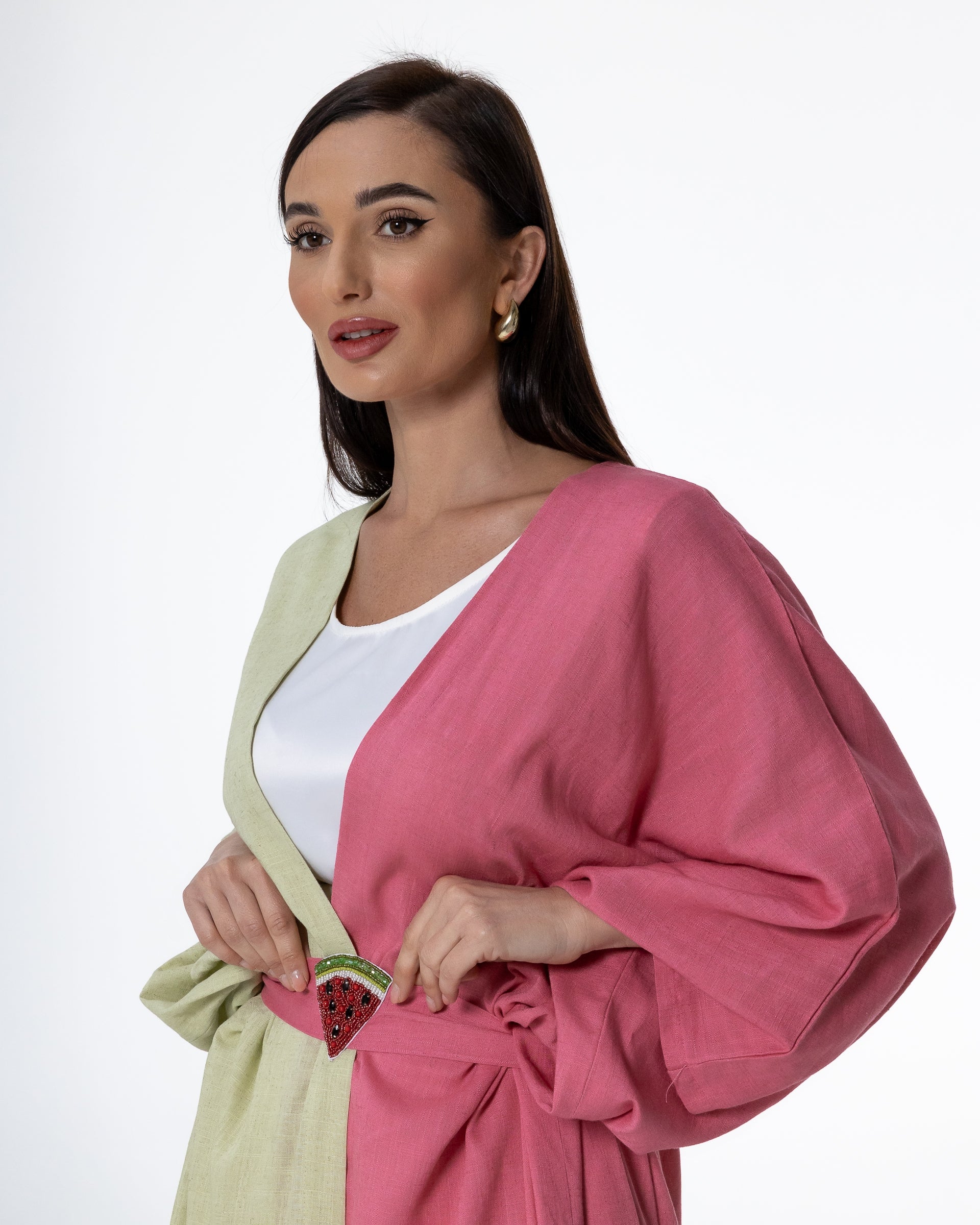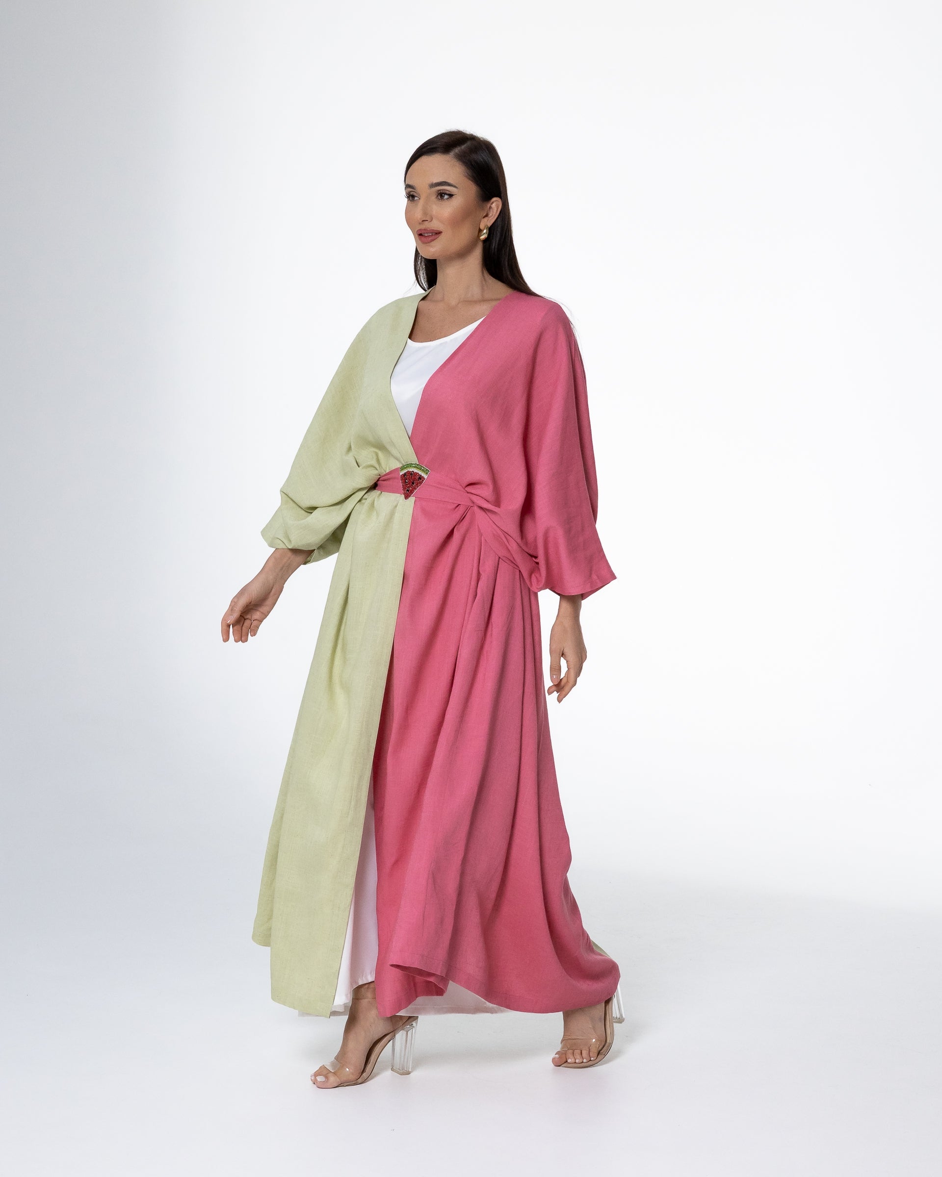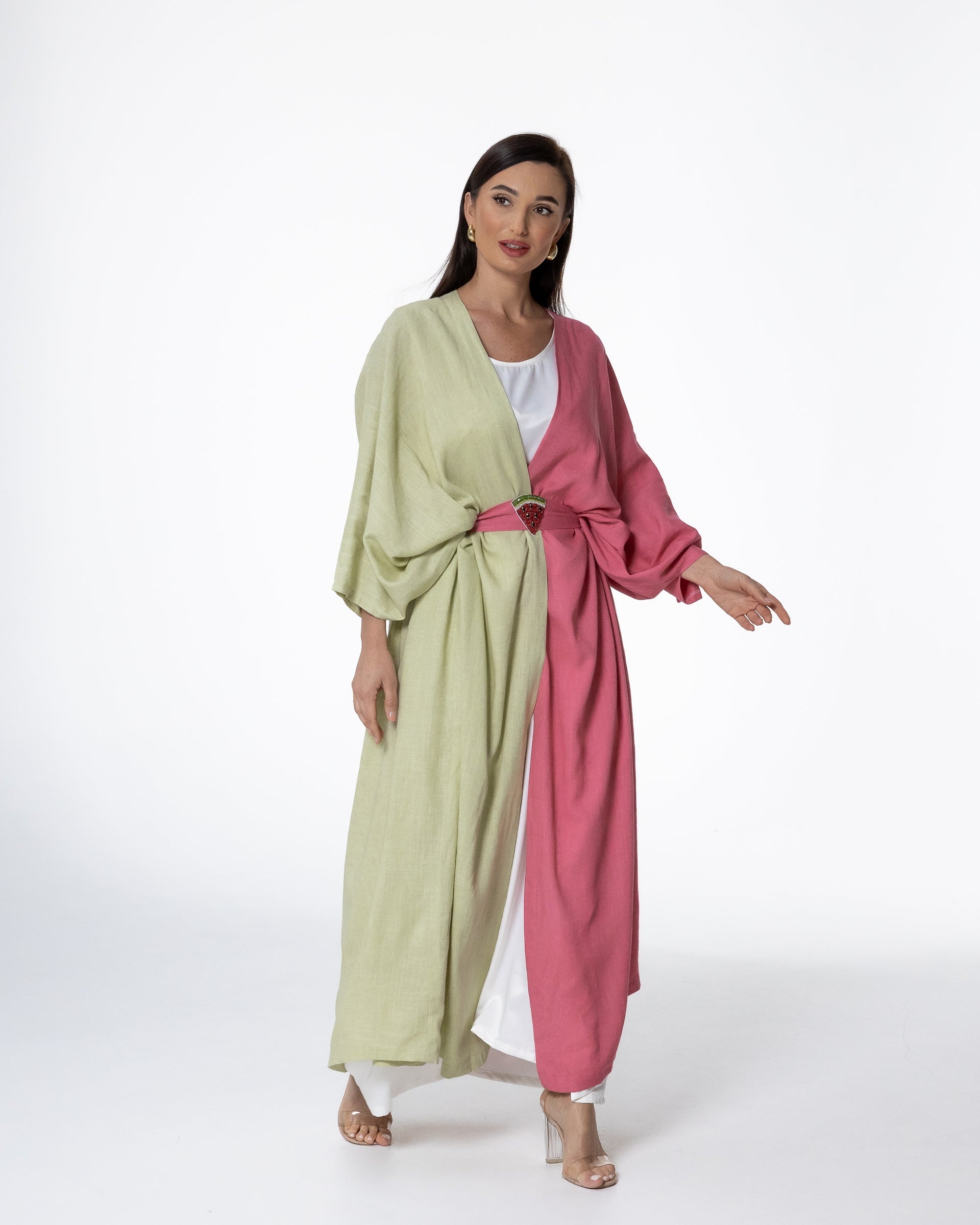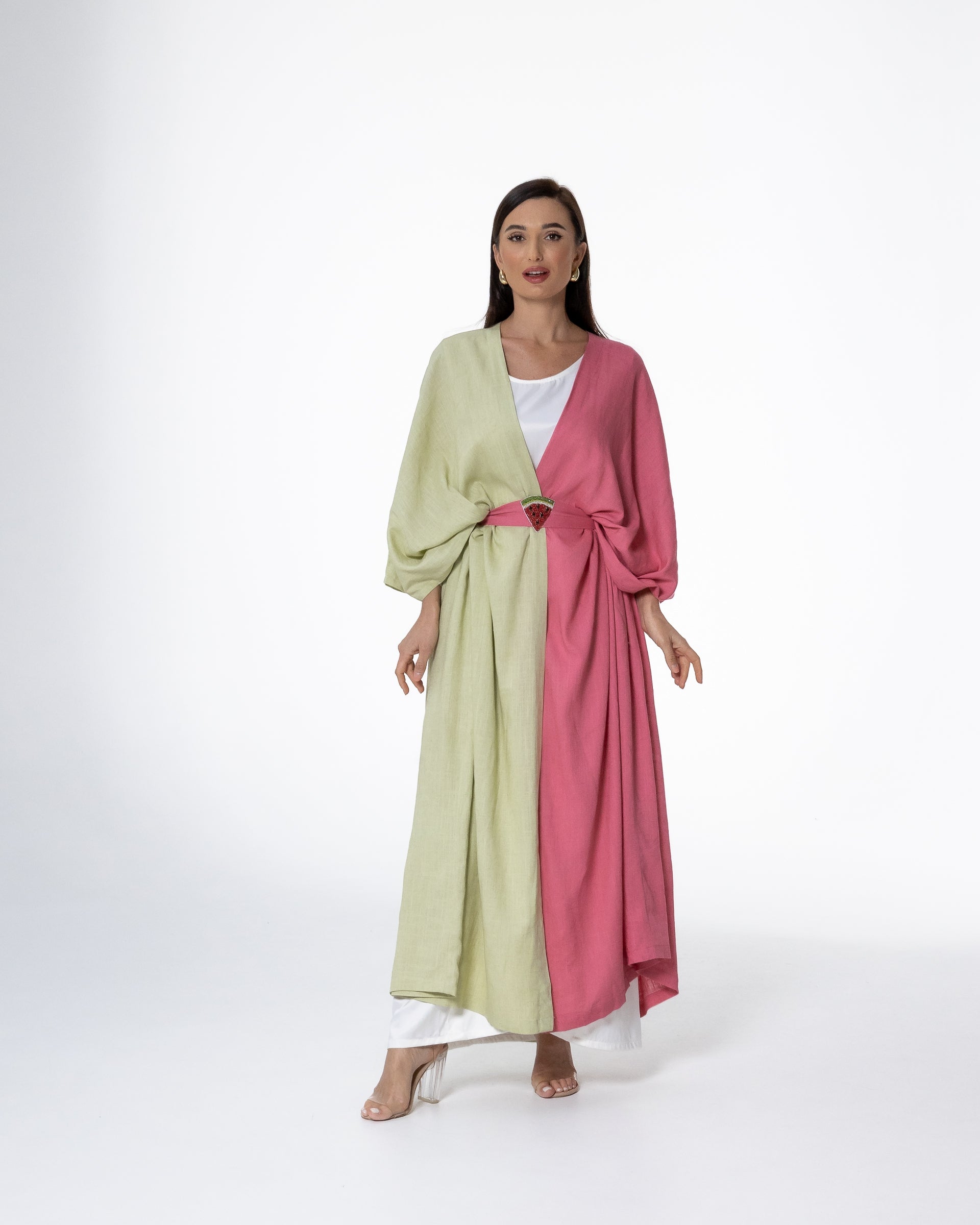- Product: Blush and olive dual-tone bisht with watermelon belt