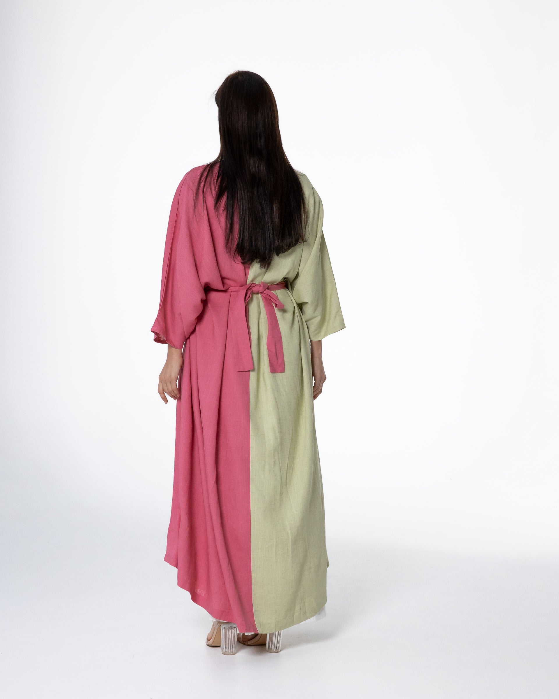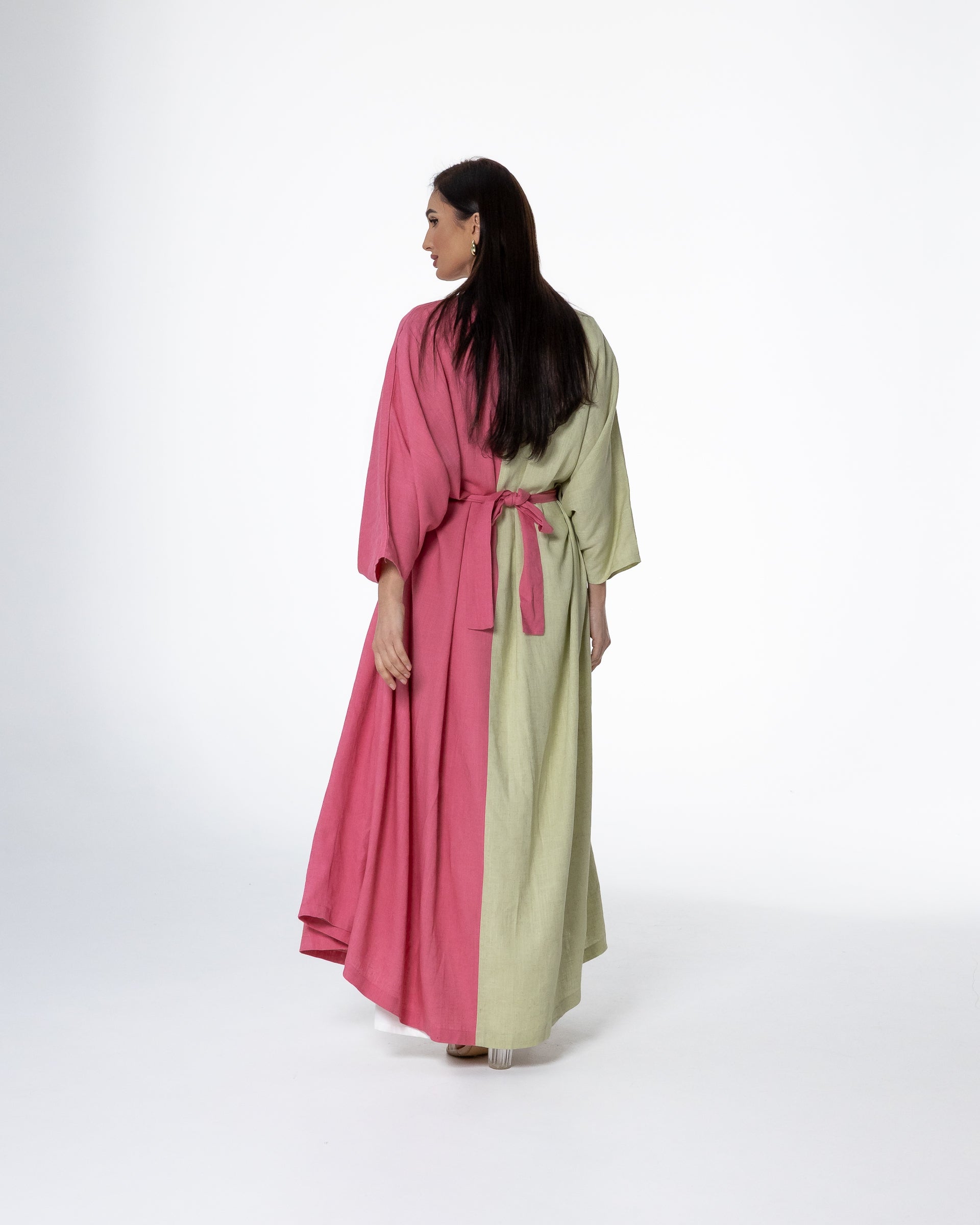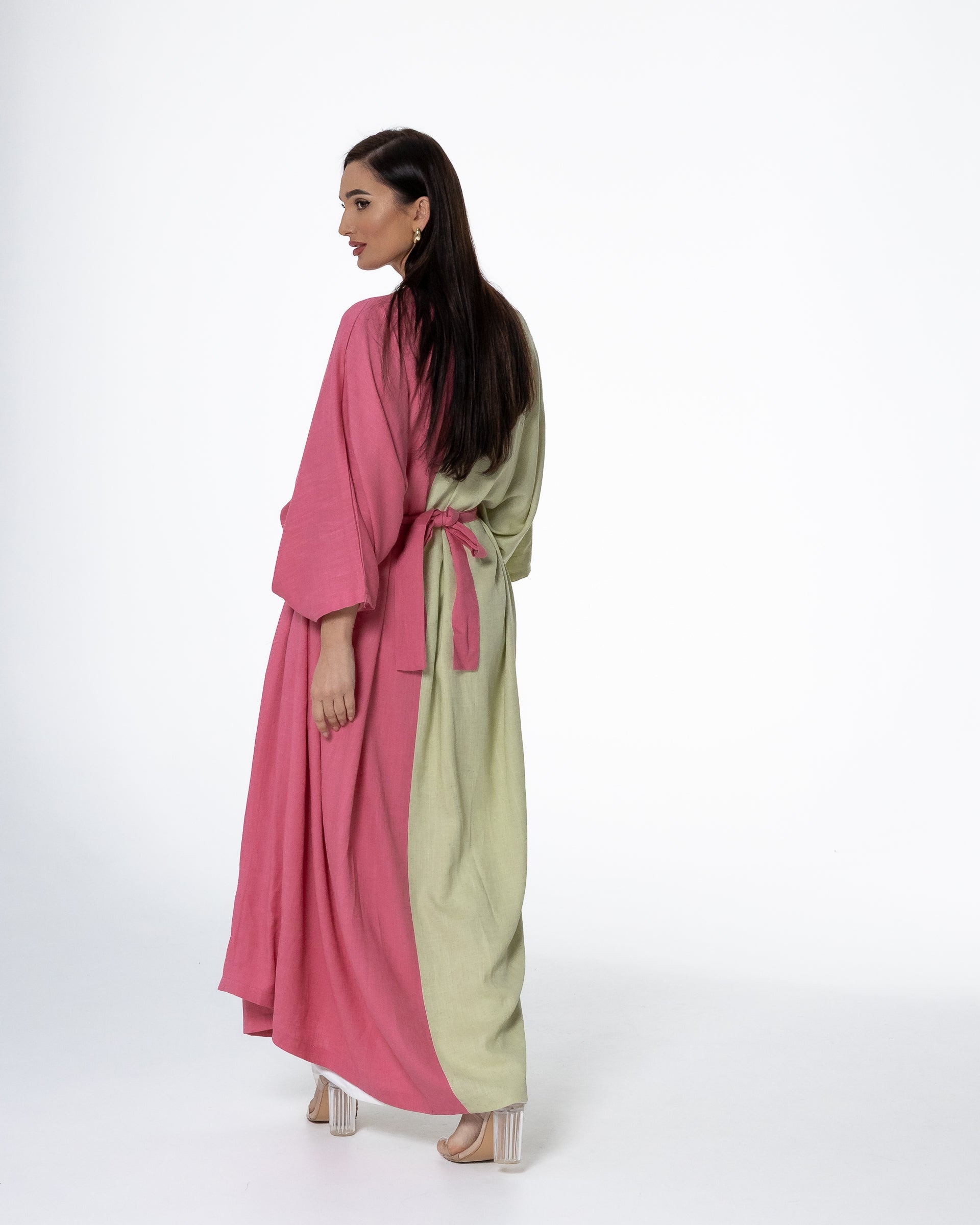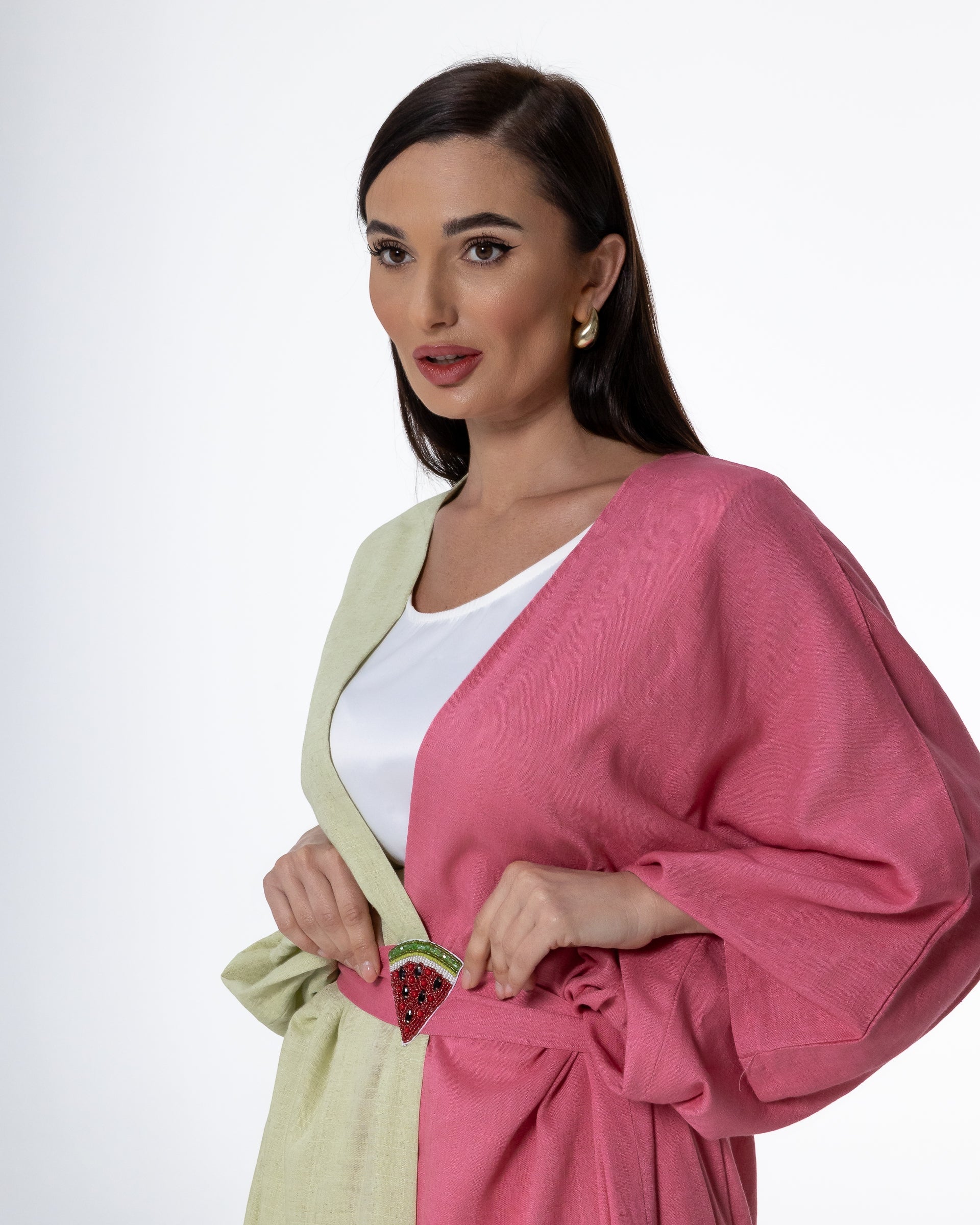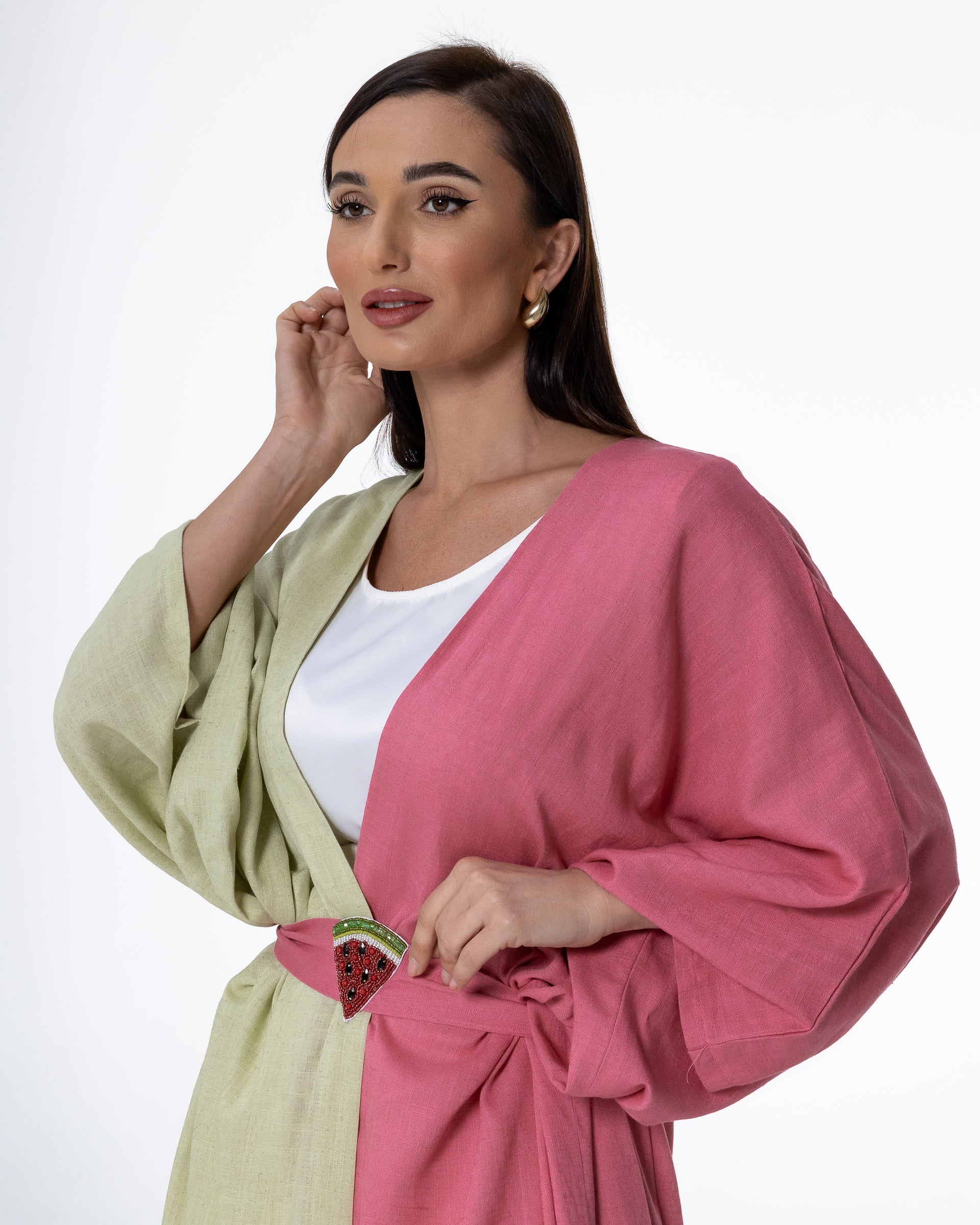 - Product: Blush and olive dual-tone bisht with watermelon belt