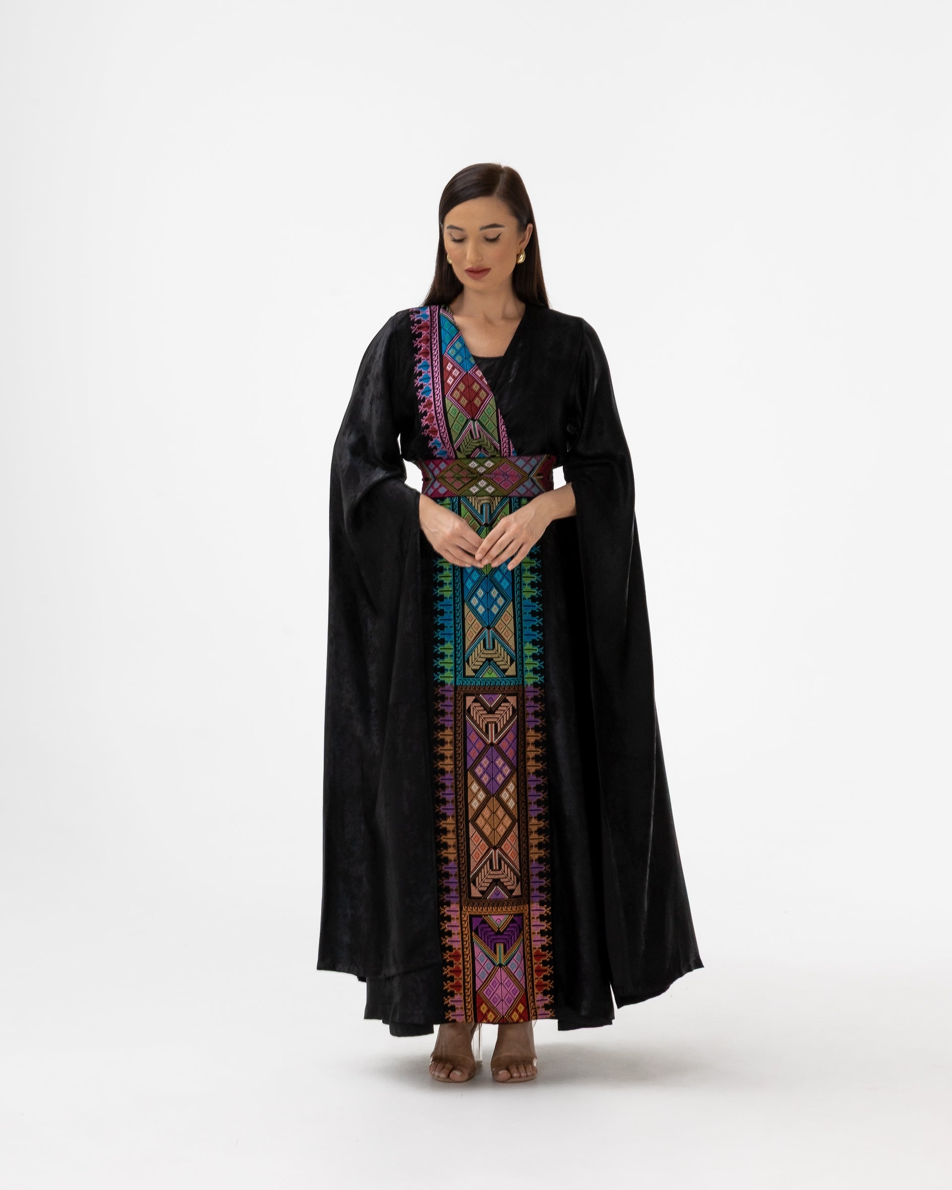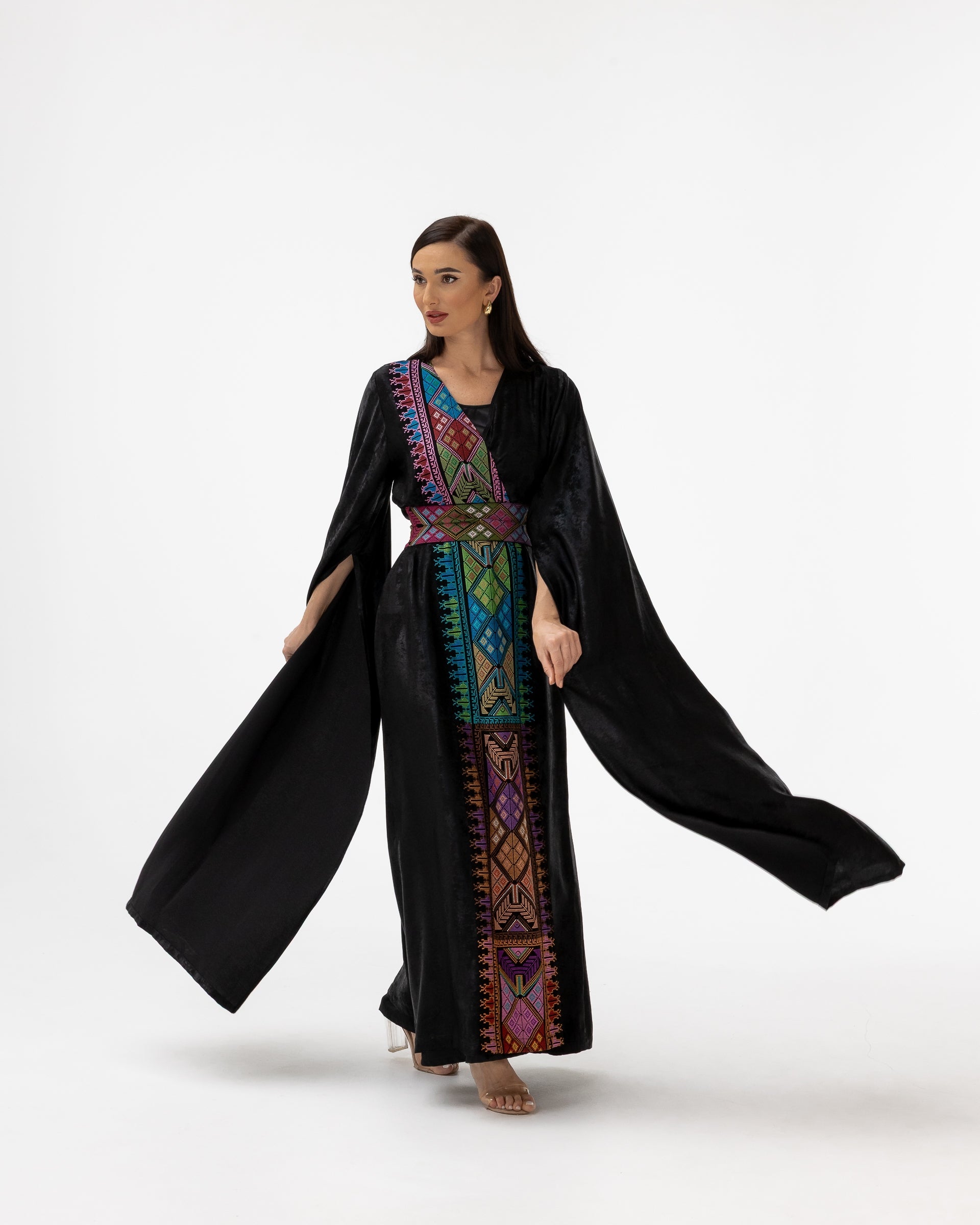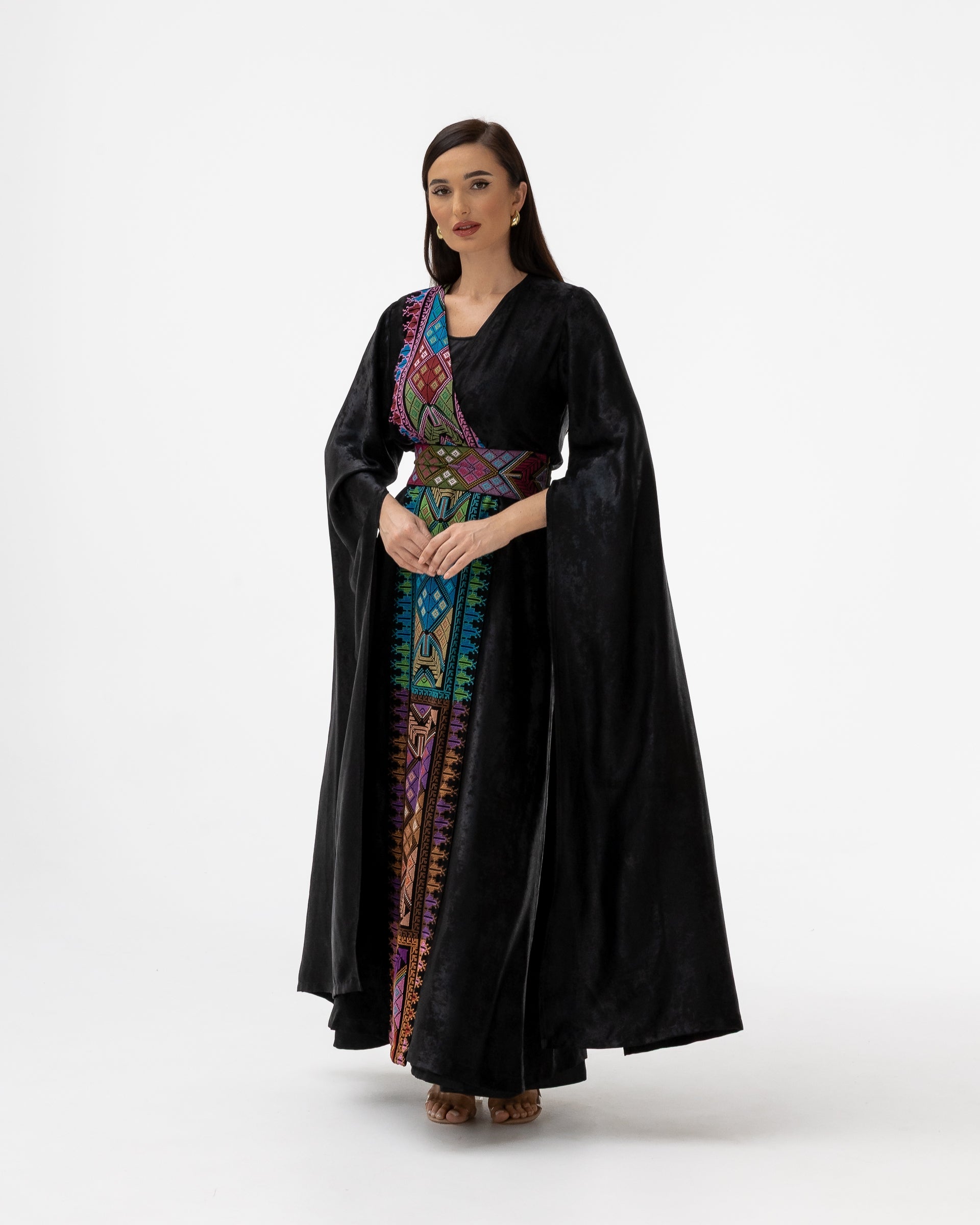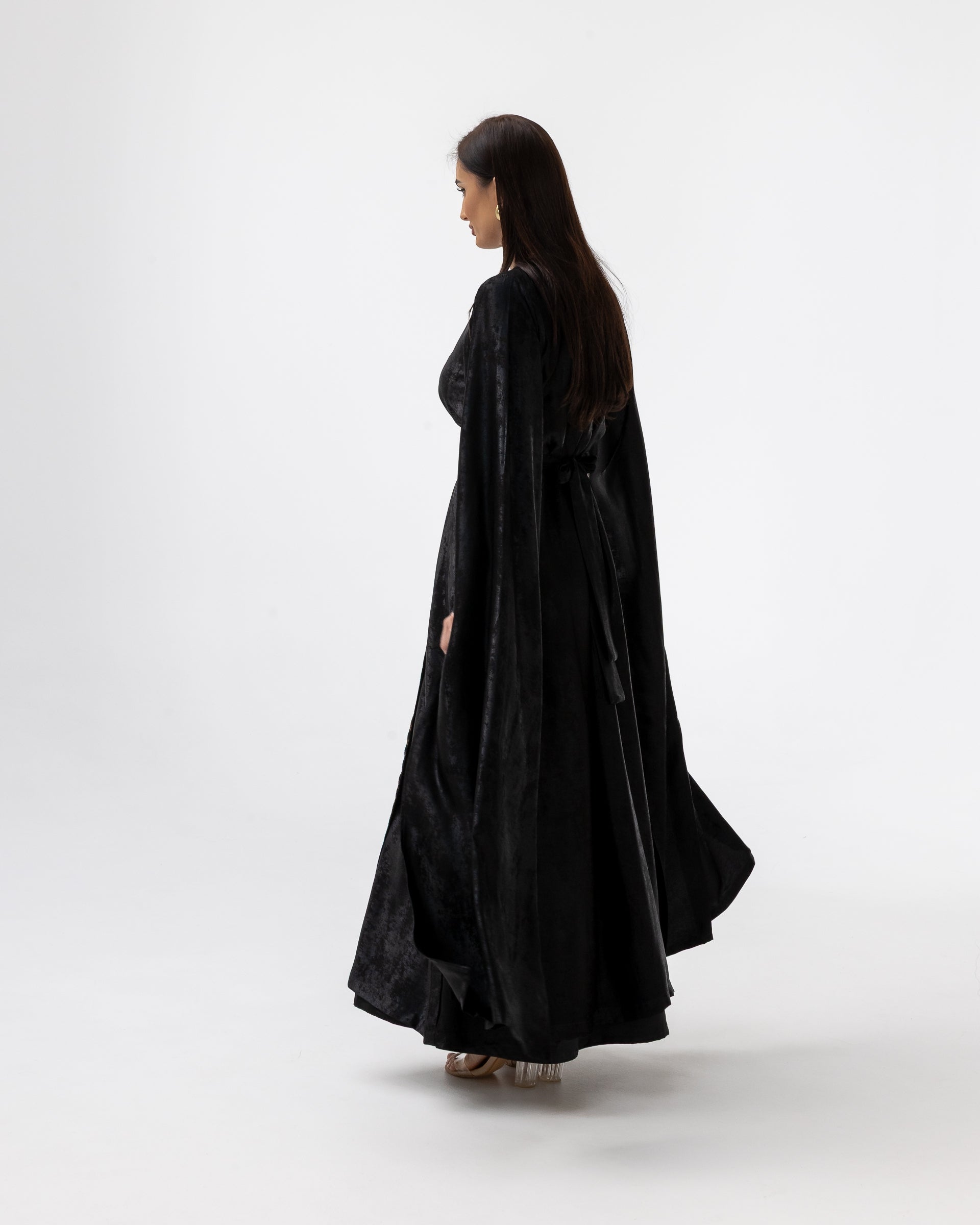 Black Abaya with Flowing Sleeves & Embroidered Details