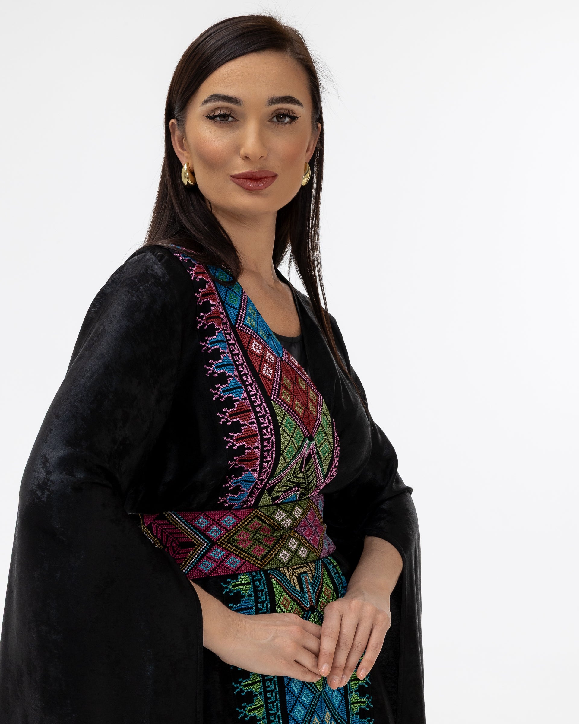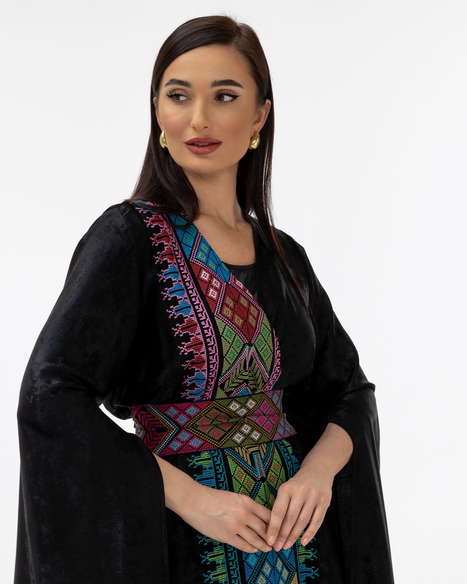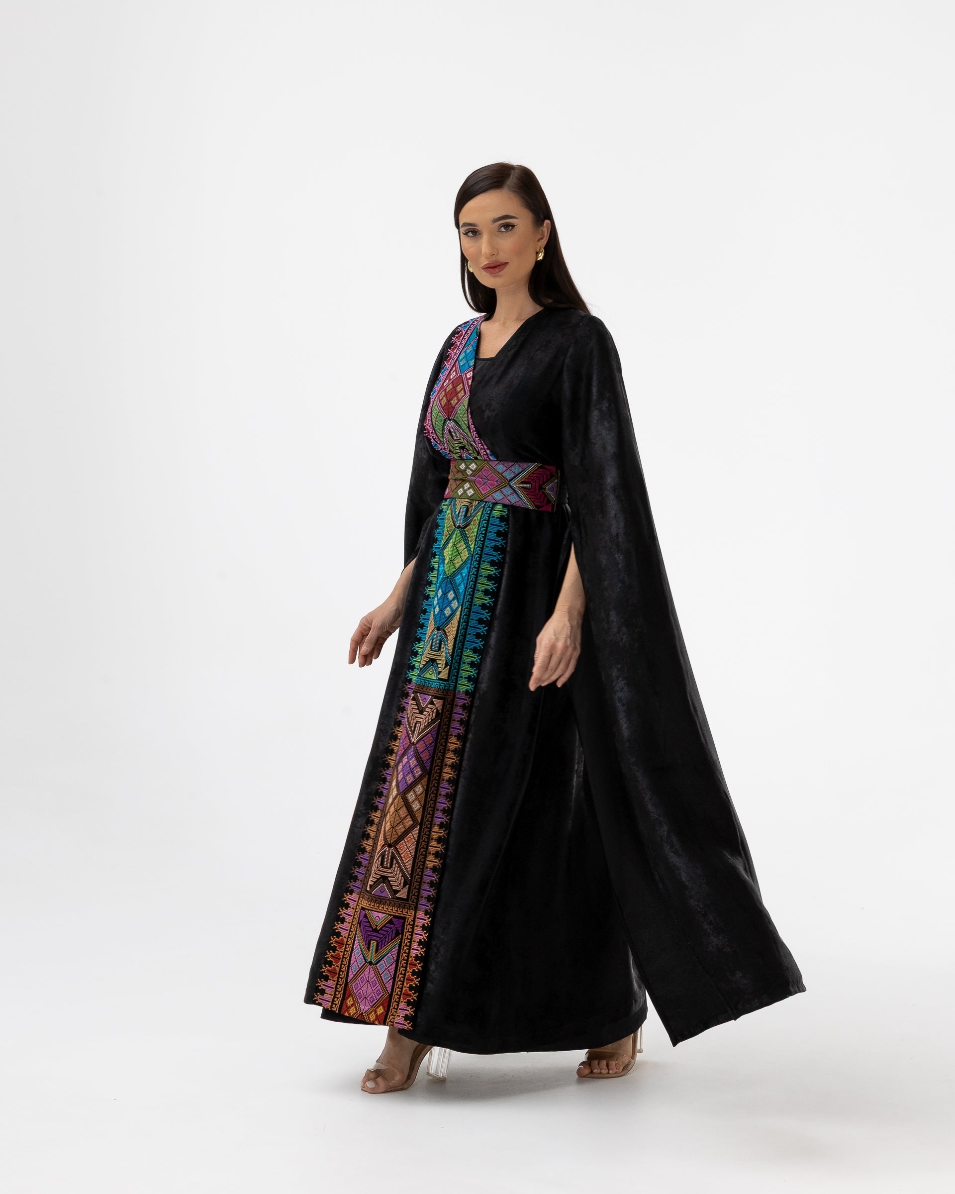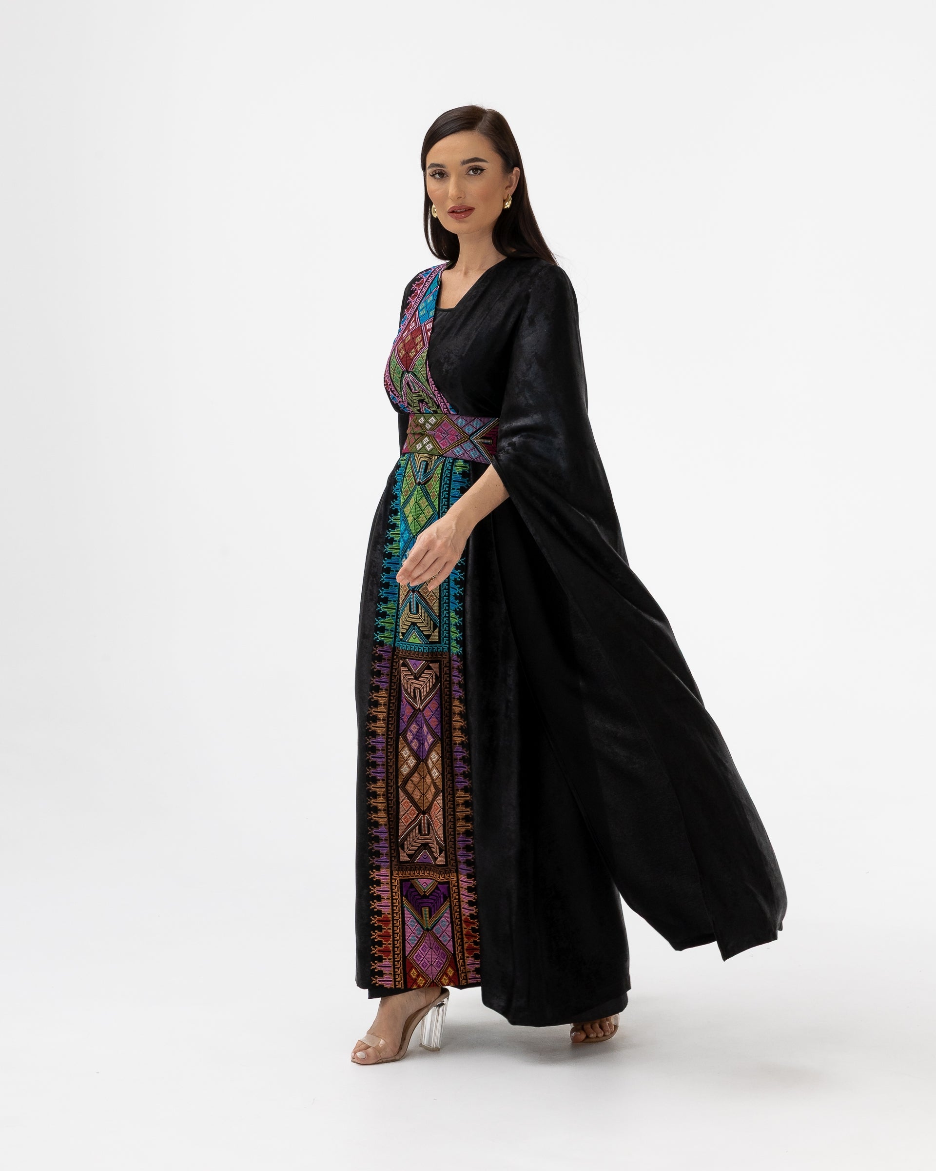 Black Abaya with Flowing Sleeves & Embroidered Details