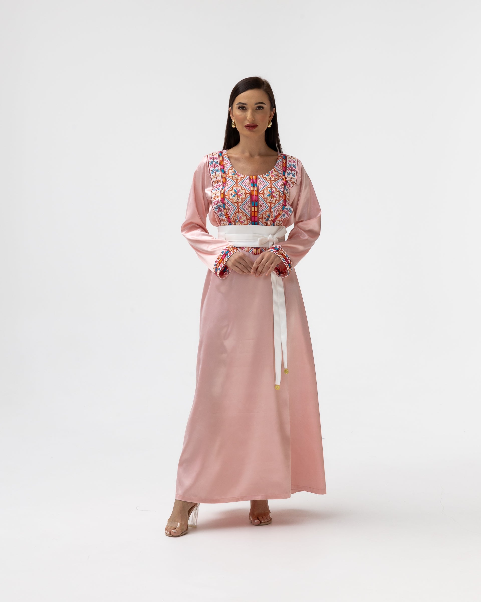 Blush Kaftan with Multicolored Embroidery