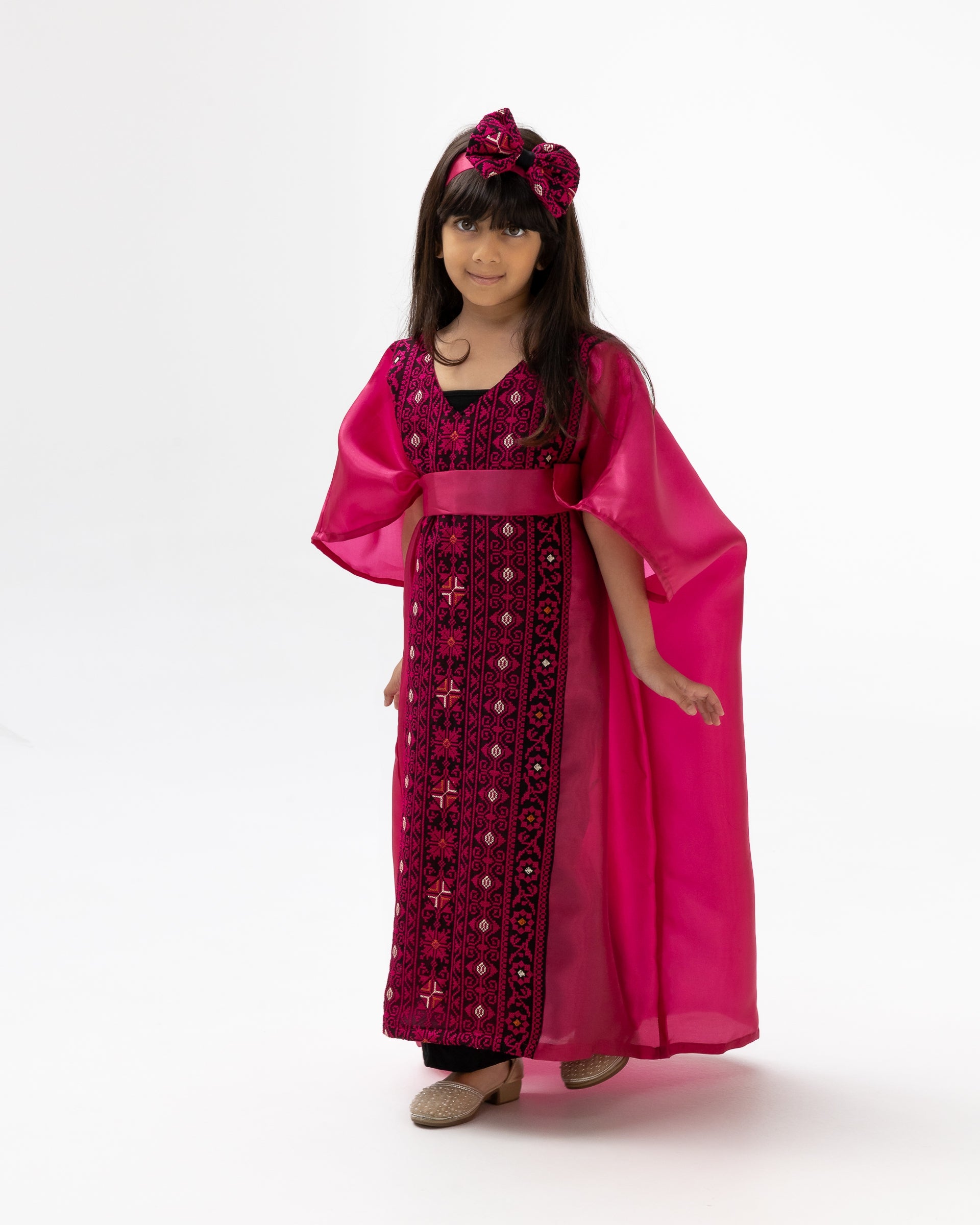 - Product: Kids fuchsia pink kaftan with red embroidery