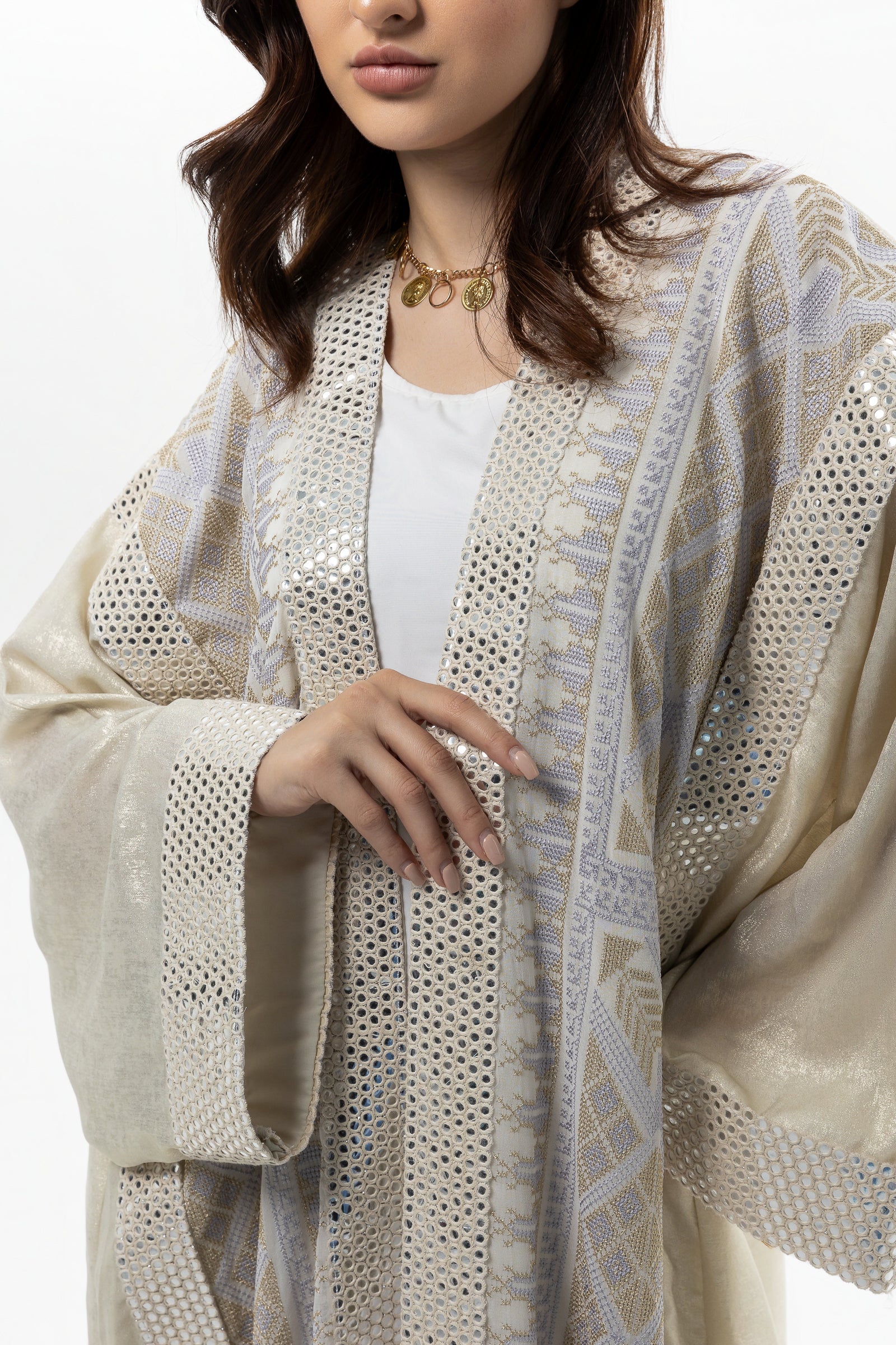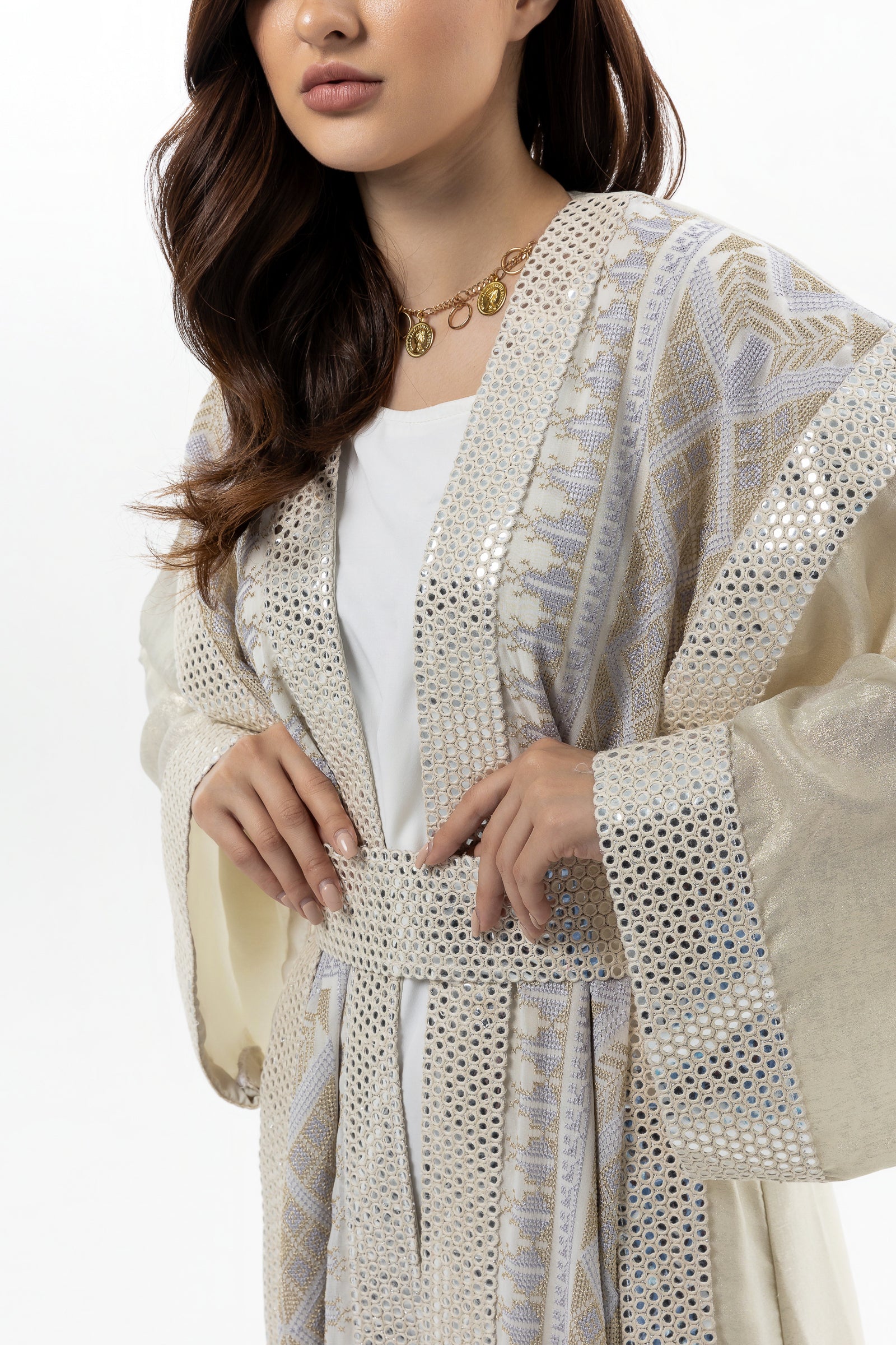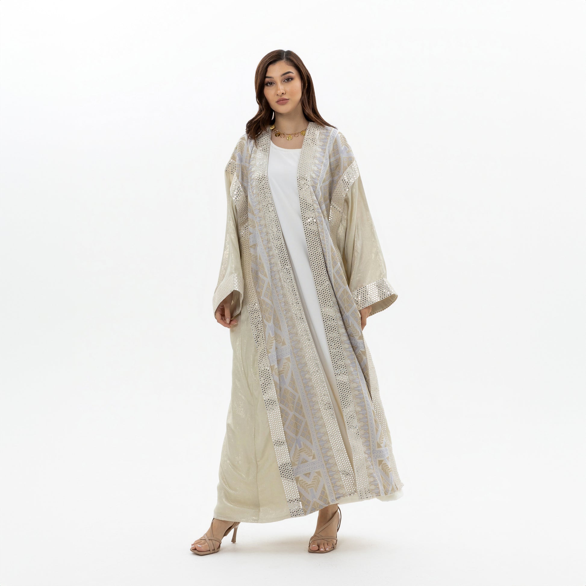 - Product: Sequin abaya with gold tatreez details